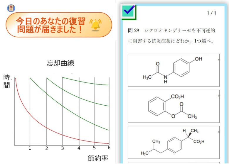 復習することは重要ですが、復習問題を管理することに時間と心労を費やすのは非効率的です。まるちーずは復習すべき問題を然るべき最適なタイミングで提案します。あなたは問題を解くことに集中してください。