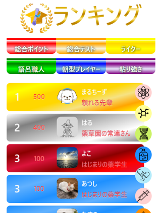 学習度に応じてポイントが加算されるランキング機能があります。試験までは長い道のり。疲れたら時々覗いて頑張っている人達から刺激をもらいましょう。