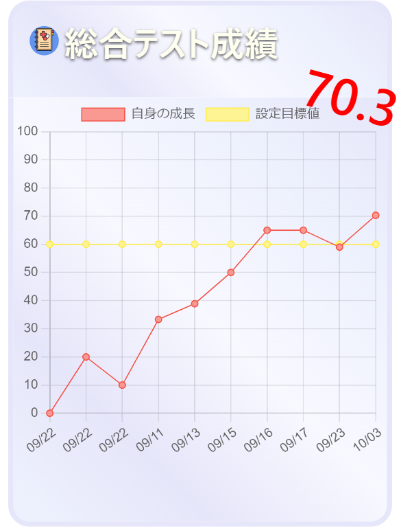 あなたが学習を始めたその日から。まるちーずは記録を始めます。目標点数は自分で設定。高過ぎる目標に消沈する事はありません。更に、得意科目と苦手科目も分析。得点アップに繋がります。